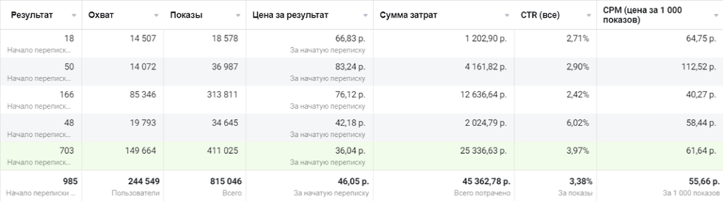 До старта продажи велись через WhatsApp и Instagram Direct без CRM: не было статистики, понимания количества продаж и источников. Мы выстроили систему: интеграции каналов в CRM, сквозную аналитику и рекламные кампании с A/B-тестами и ретаргетингом по базе клиентов. Итог — 985 заявок за месяц при CPL 46 ₽ и доходе 1 000 000+ ₽ (затраты 45 362 ₽).